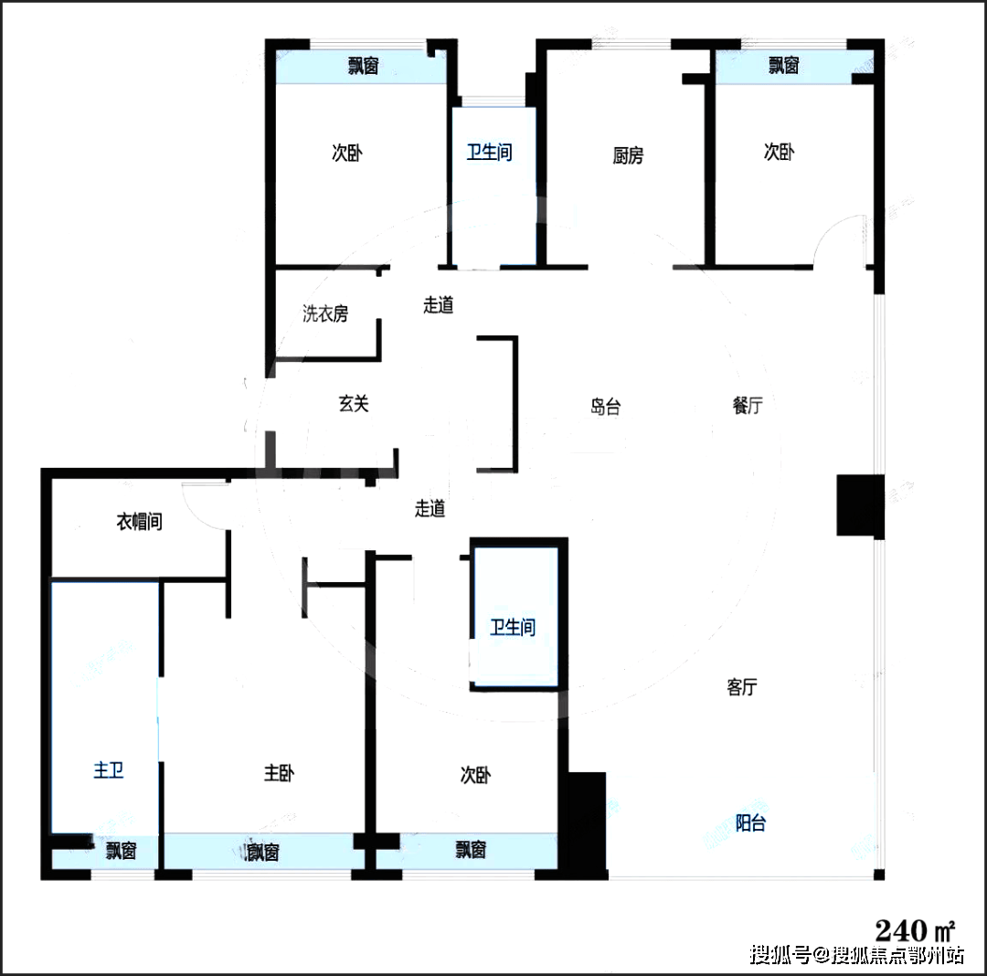 大面积段集中在1幢楼,由190㎡西边套和240平米东边套组成,各有30套。