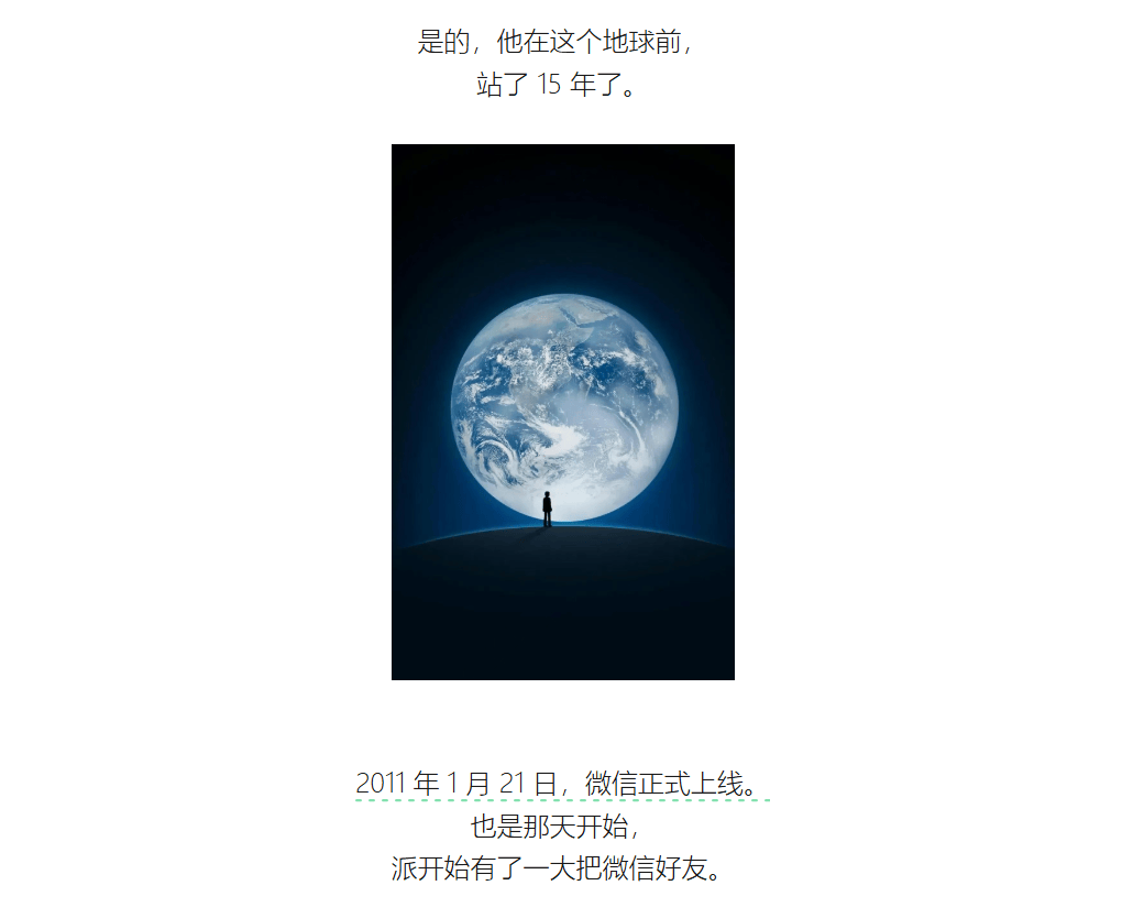 今天是微信上线15周年,前些天问产品的同事,也算一个小小的节点,要不要出来跟大家再聊一聊?同事说好像也不用特意选个节点,或许让用户自己聊聊比较好。