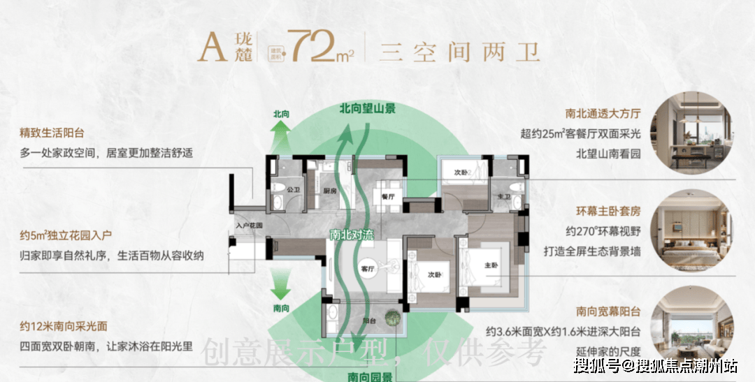 72㎡,是老黄埔最小的产品,但实现了三房两厅两卫,其他项目哪怕突破80㎡,也只能实现1.5卫。不仅是朝南,更是拥有南向园景+北向山景双重视野。