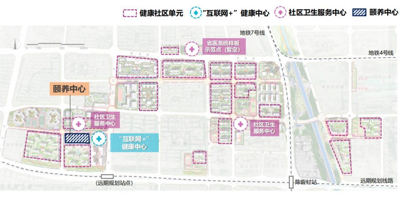 社区规划多个社区健康服务中心,近距金水区总医院,打造全龄普惠健康理念社区。