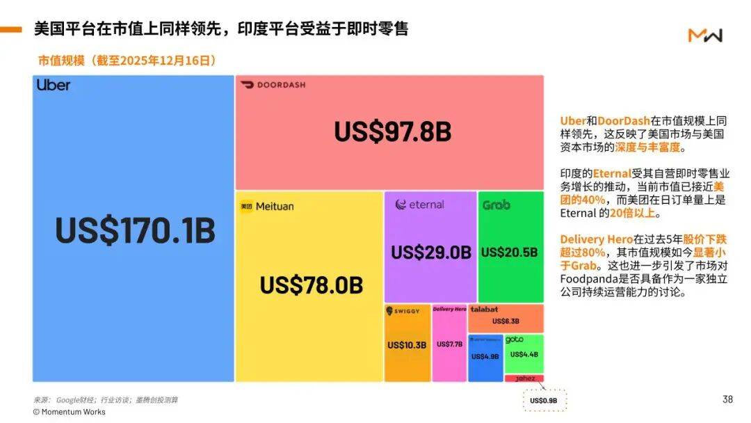 在整个外卖平台生态中,几乎所有平台在过去几年都经历了同一轮下行周期,但结局并不相同。Uber通过出行、外卖和广告的协同,重新讲清了现金流改善的故事,股价率先完成修复;美团仍在波动中,但市场对其规模、运营能力和战略收缩后的确定性并未否定;DoorDash和Grab虽然承压,但仍然是区域头部玩家的定价。