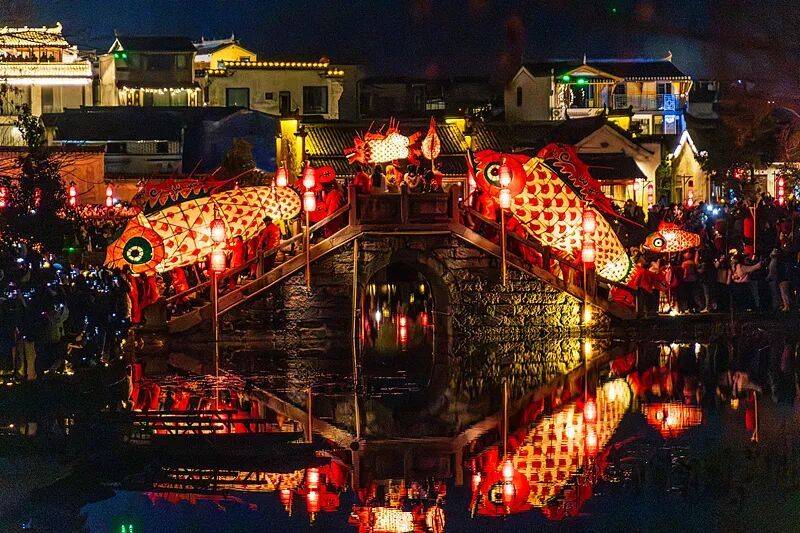 作为活动首站,安徽“智慧大集”以科技为笔、非遗为墨,绘就乡村年味新画卷。机器人挥毫写“福”字,机器狗开路“闯关”,嘉宾组成的“皖美联盟”穿梭于17个特色展区,用一幅“福”字换阜阳柳编福桶、用六安瓜片换铜陵白姜,在趣味互动中铺展开动态的安徽风物全景图;夜幕降临,来自黄山、阜阳、六安、铜陵等地的特色鱼灯巡游,让非遗技艺成为连接城市与乡村的文化纽带。更动人的是“第一书记”们带来的“家乡”故事,这里有千亩良田的醇香、山间林下的清芬,他们把村庄脱贫致富的奋斗写进每一份年货里。