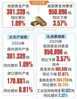 2025年我国黄金产量 同比微增 消费量同比下降