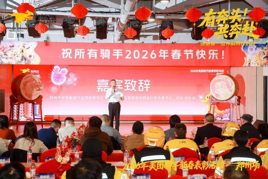 2月5日,美团骑手新春表彰活动在郑州市总工会文体中心开启。在郑州市委社会工作部、郑州市外卖配送行业党委、郑州市总工会一直以来对美团骑手群体的关心和支持下,58名美团骑手欢聚一堂。外场以 “春风同路人”车站签到开启,结合套圈、平衡挑战、转盘等互动游戏积累“春风里程”,融合木版年画、面塑等河南非遗文化;内场以骑手才艺、豫剧、舞狮等民俗表演穿插三轮颁奖,给骑手留下了难忘的记忆。