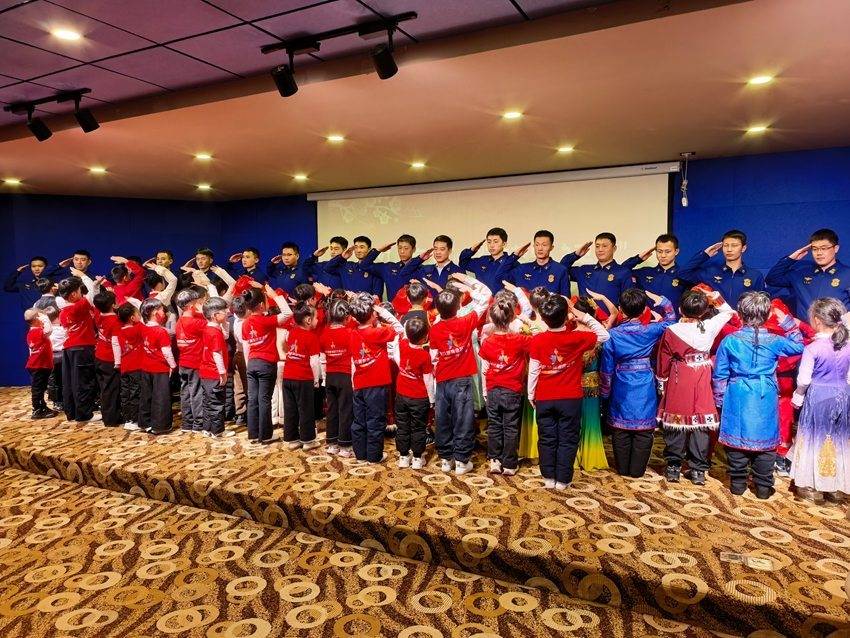 慰问环节温情满满。延吉礼遇传媒创意有限公司党支部组织青少年亲手制作新春贺卡与手工艺品,向常年奋战在救援一线的消防救援人员表达崇高敬意与节日祝福。孩子们将满载心意的小礼物送到消防员手中,并齐声送上新春问候,生动诠释了军民鱼水情深。