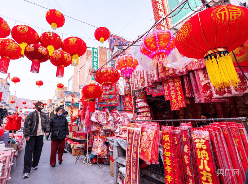 央广网焦作2月6日消息(记者 张羲轮 通讯员 原文钊)春节将至,河南省焦作市山阳区的年货市场购销两旺,处处洋溢着喜庆暖意。新山阳商城的喜庆用品店内,红灯笼、中国结、春联福字等年饰挂满货架,满眼中国红将新春氛围烘托得格外浓郁,商户们正忙着整理备货;各大商超里,年货礼盒、生肖挂饰等商品琳琅满目,市民带着孩子精心挑选福字挂饰,置办年货,现场一派热闹的烟火气息。