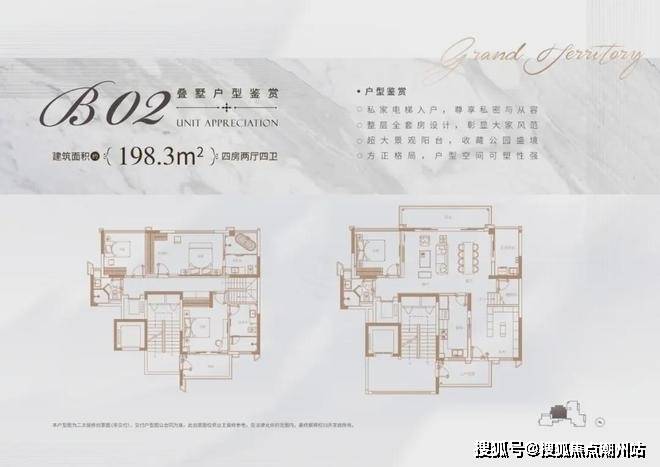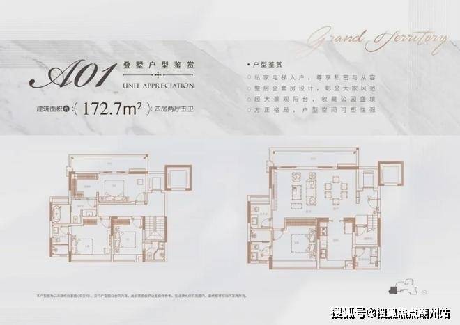 叠墅总层高6层,叠墅面积约168-215㎡分为上、中、下叠三户