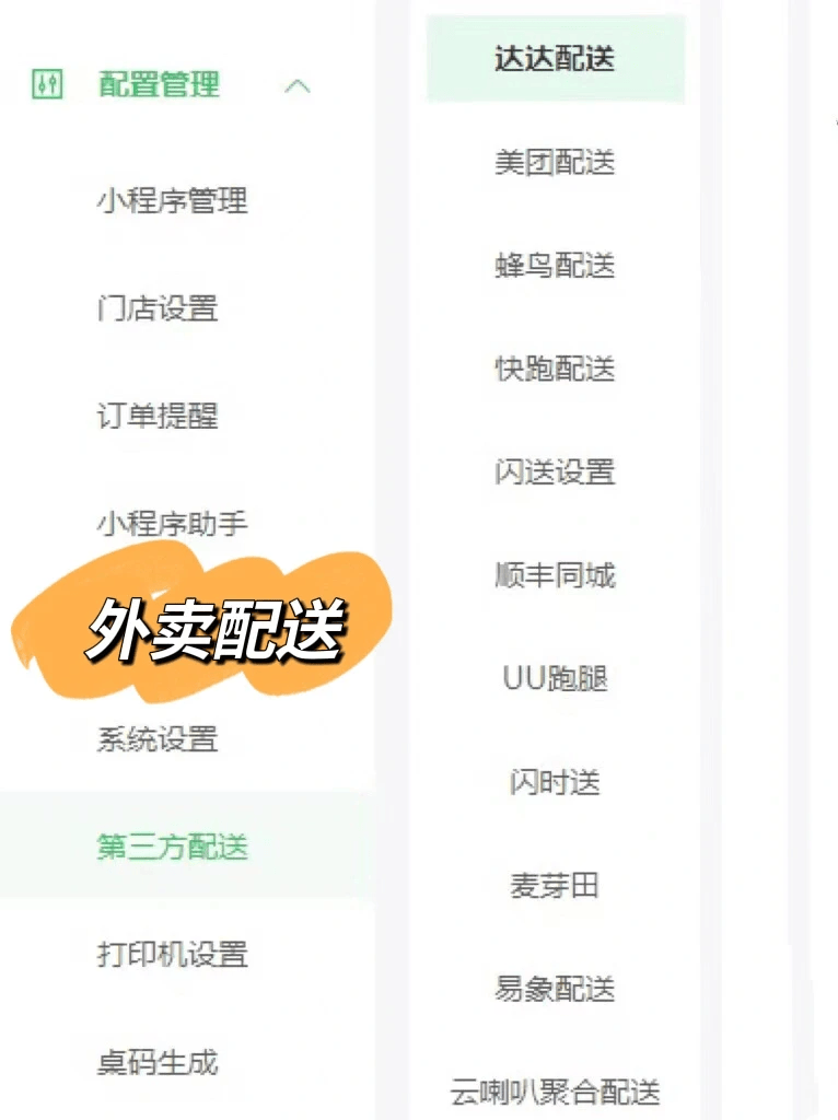 很多老板担心自己做小程序没骑手,其实完全不用愁。优质的餐饮小程序早就对接了达达、闪送、顺丰同城这些第三方配送平台,还有自营配送功能,灵活选择: