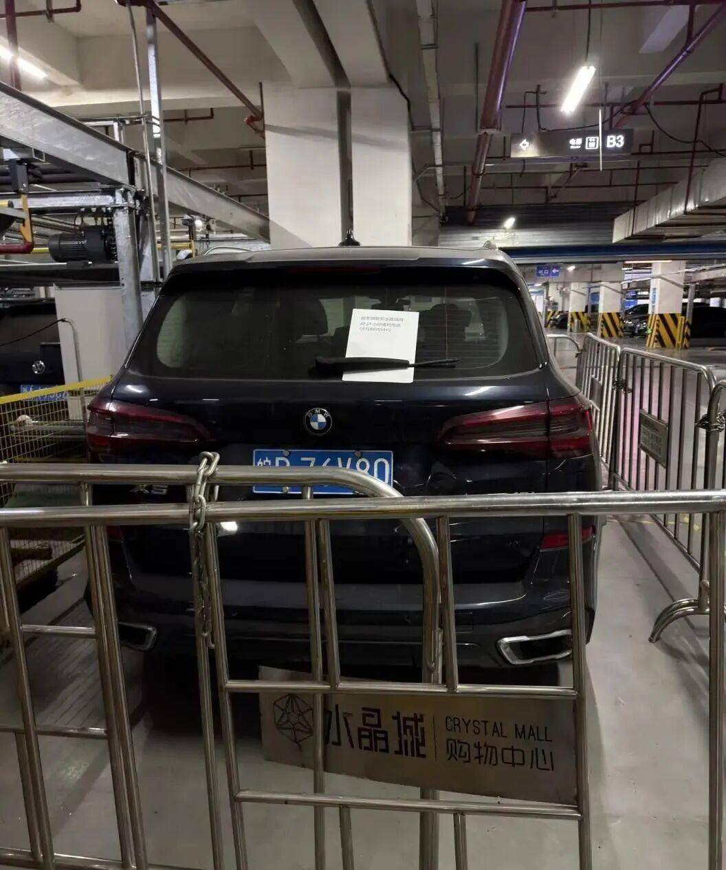 据发帖人描述,该车从去年3月到昨天停车费高达16900元,车的位置离出口还挺近,商场直接把这辆宝马用围栏围起来了。“这个商场地库很窄,时时都有保安盯着,我估计大家都很好奇车主什么时候来!”该网友表示,并向车主喊话,“你这宝马还开不开了?”