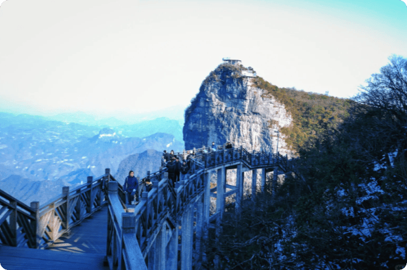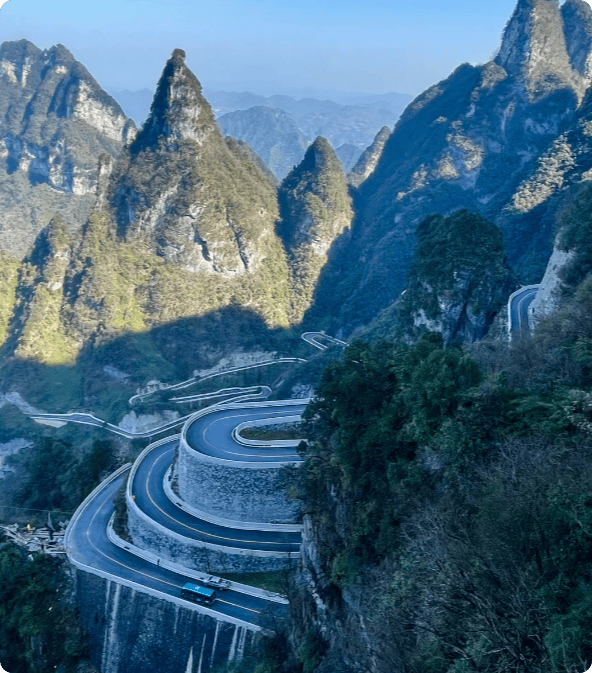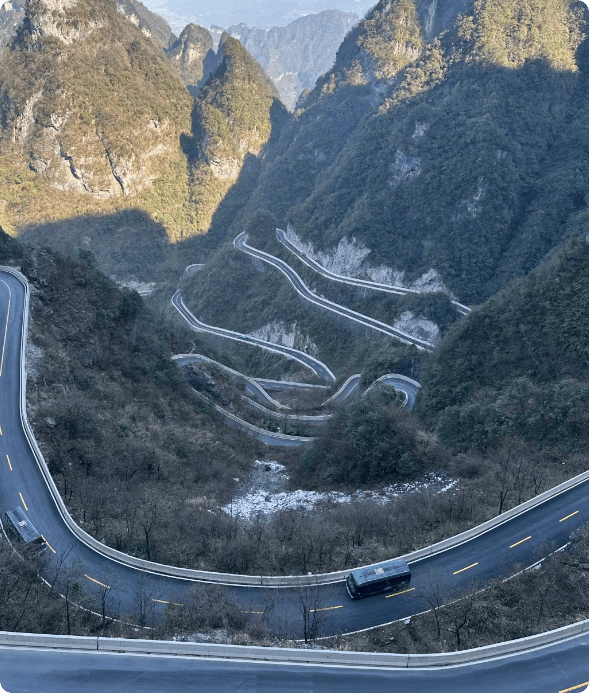 中午用餐后去天门山,其索道被誉为“天下第一索道”,全长7455米,沿途风景渐变,从市区烟火到山间仙境,云雾渐浓如闯云端。上山后打卡天门洞,99道弯的通天大道十分壮观,有勇气的朋友可挑战999级台阶登顶,我量力而行中途放弃。之后去玻璃栈道,穿5元/人的鞋套,行走在悬崖之上,惊险刺激,小纤全程陪同打气、拍照。晚上返回市区酒店,行程充实不疲惫。