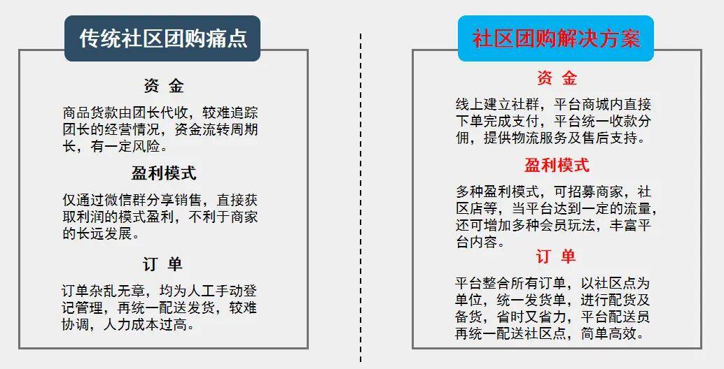 针对传统社区团购中订单追踪难、资金流转周期长等痛点,智能化社区团购系统提供了线上社群建立、平台商城下单支付、统一收款分佣等解决方案。平台整合所有订单,以社区点为单位统一发货单进行配货及备货,省时又省力。同时,多种盈利模式如招募商家、社区店入驻等,也丰富了平台的内容。