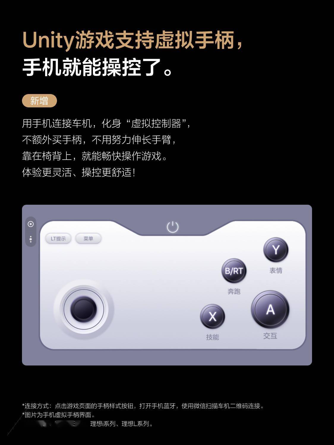 - Unity 游戏支持虚拟手柄,用手机连接车机,化身“虚拟控制器”,不额外买手柄。