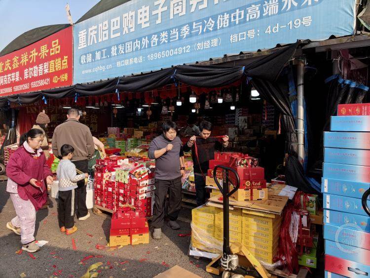 当天,上游新闻记者走进重庆双福国际农贸城,蔬菜区、水果区和坚果市场一派繁忙景象,保供忙、交易旺。不少市民提前采购年货,塞满车子后备厢和后排座,浓浓的年味扑面而来。