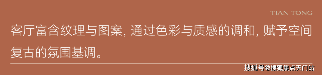 硬装上以木饰面和米色石材做结合,物料原始肌理感,表达经历时间后的沧桑痕迹。大理石地面镶嵌精致金属条,保留材质的原始感,木饰面配柔和灯光,调和出安宁澄澈的归家氛围。