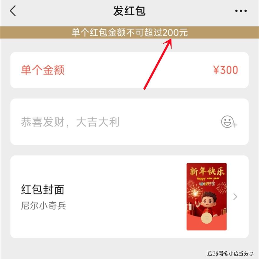 第一个区别,就是金额上限,大家应该也发现了,发红包看不到具体的金额,而且微信普通红包,单个最高只能发200元,就算是情人节、过节过年等这些特殊的日子,最多也只能放宽到520元,所以,如果你要发送的红包超过了200元,就得分几次发送