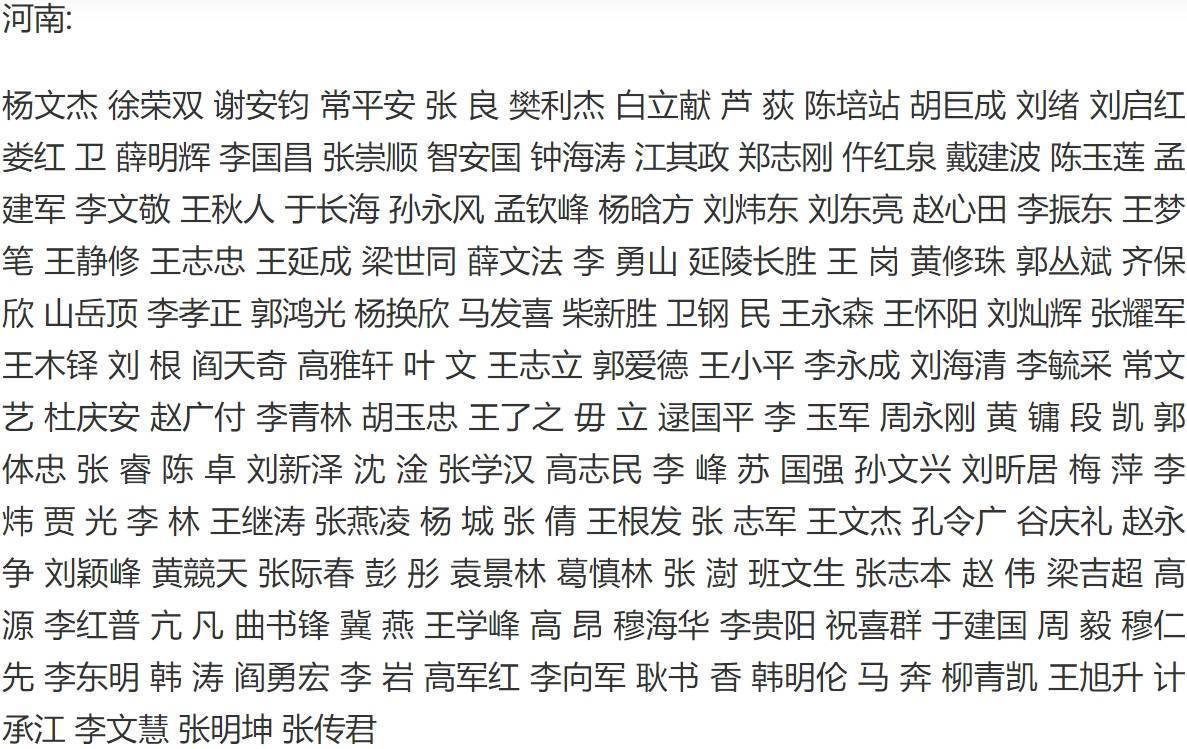 梁治国 包宪廷 杨 雍 孔繁敬 庞道国 王建槐 贾建华 叶建清 徐正德 陈志仁 陈世清 沈胜刚 计永和 高耀东 郭泽红 郭守仁 边靖轩 王海燕 邹美星 张清军 张文甫 吴正前 姜守垣 苗 刚 韩德广 郝邦义 魏彥林 杨益奇 邹定一 白 锐 冯立松 饶龙起 易君 郎兆祥 李敬国 李毅强 田 野 李继哲 刘百泉 张江涛 廖 飞 徐存孝 刘恒志 刘凤鸣 郭振辕 孟淑玲 杨德富 周德亮 周贵荣 张成宝 刘庆生 任玉岭 穆宣银 潘春富 郑济铭 霍建国 韦忠义 魏元祥 田孝德 周红雨 周晓陆 史丽薇 娄可成 施 云 冷万里 汪 良 李 刚 李建春 李长泉 李永忠 陈 友 黄吴怀 张振生 赵远强 张孝勇 王金凯