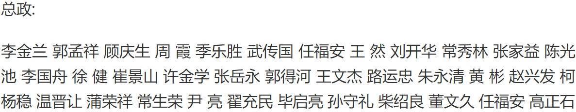 孙 彧 淡高武 张延风 白冰峰 丁志信 魏明义 张 逸 李 惠 刘春祥 谷衍舟 唐永平 符 浩 刘志德 刘建设 张锦华 杨小琪 刘树勋 韩春涛 李杰民 钟 镝 刘小民 宋江安 王永明 王 强 吴川淮 徐伟聪 张 琴 牟君诚 王亚 兵 郭连生 封海洪 张建林 周一波