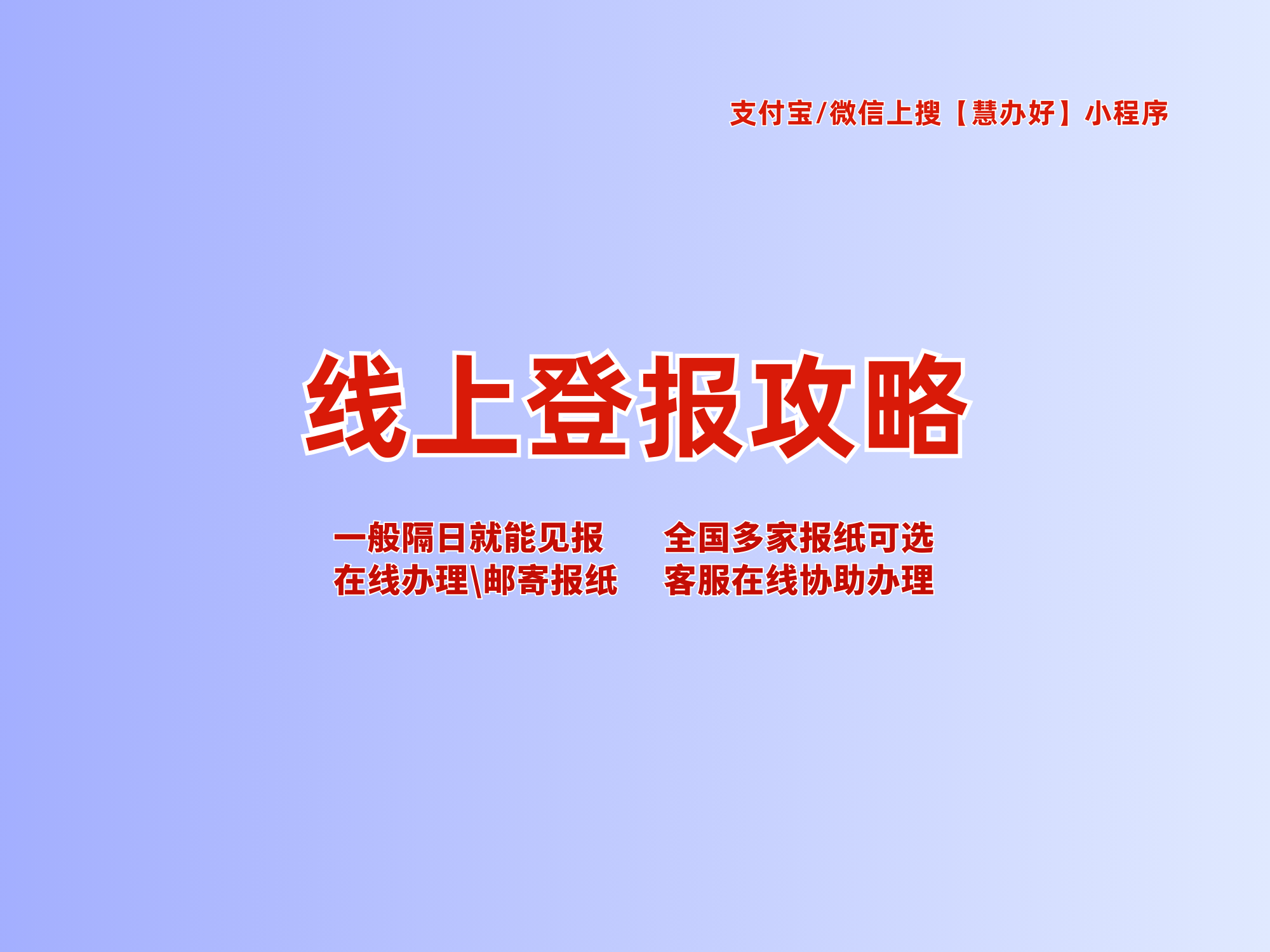除了报社自营渠道,市面上还有不少正规聚合平台,这类平台整合了全国多家主流报社资源,涵盖中央级、省级、市级各类报纸,提供一站式登报服务,无需切换多个平台对比筛选。用户可以在同一平台上直观对比不同报纸的登报价格、覆盖面、见报时效,根据自身需求选择适合的选项,操作十分简便,尤其适合不熟悉报社资源、不确定该选择哪家报纸登报的新手用户。像“慧办好”“登天下”等都是这类平台的典型代表,能实现一地提交,全国办理,并且审核快、价格透明。