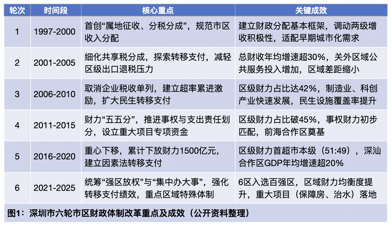 深圳市六轮市区财政体制改革重点及成效。南方+根据公开资料整理