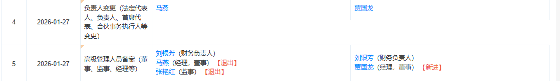 1月27日,北京贝牛餐饮管理有限公司曾发生工商变更,马燕卸任法定代表人,由贾国龙接任。