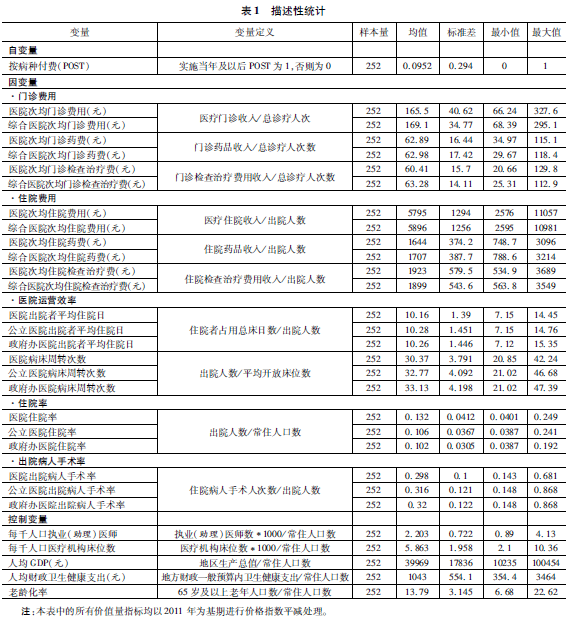 1.因变量:各类医院次均门诊和住院医疗费用、出院者平均住院日、病床周转次数、住院率和手术率。