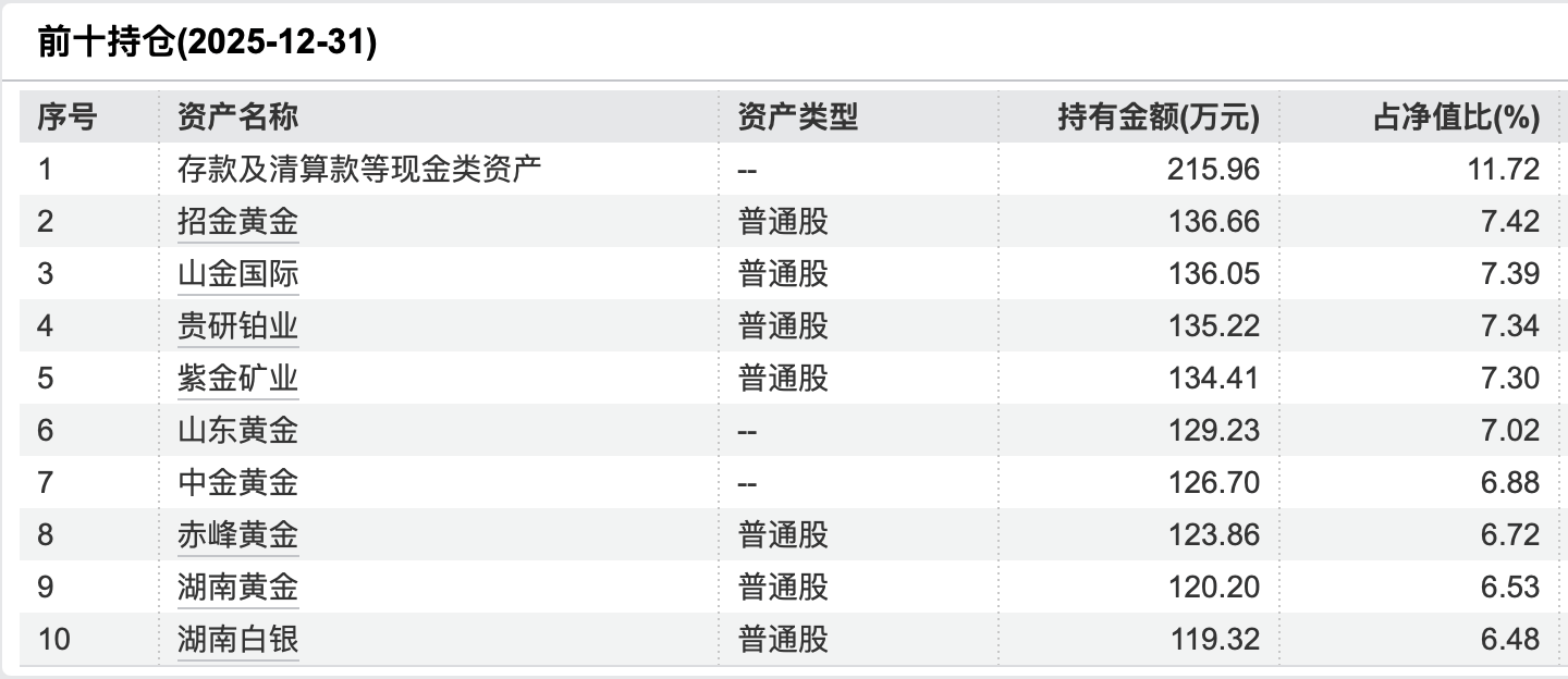 华夏理财天工日开8号(贵金属指数)理财产品2025年年报穿透后前十持仓,图片来源:Wind