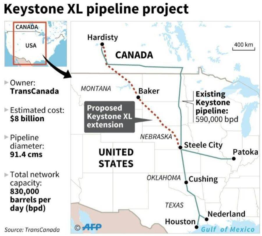 加拿大拥有丰富的石油资源,探明储量达1681亿桶,位居全球第三。大部分石油是重油(油砂),与委内瑞拉的石油类型相似。天然气储量也位居全球第九,仅阿尔伯塔省便拥有1360万亿立方英尺的储量。加拿大是全球第四大石油生产国,2024年日产量达到588.8万桶,且一直是美国的重要石油供应国,97%的石油出口都流向了美国,而美国每年进口的石油中,60%—65%来自加拿大。加拿大多年来一直推动建设Keystone XL管道,计划通过这一管道每天将83万桶原油送往美国墨西哥湾的炼油厂。然而,自2011年起,Keystone XL管道项目就成为了美国环保组织的圣杯,数次抗议和法庭诉讼让项目的成本不断增加。2015年11月,奥巴马政府最终决定因气候和环境因素否决了这一项目。然而,特朗普在2017年上任后立即签署行政命令撤销奥巴马的决定,重新批准了该项目,称其为美国能源独立的关键一步。