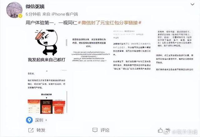 对此,微信公关总监“粥姨”发文表示:“用户体验第一,一视同仁。”并配上了一张表情包“我发起疯来自己都打”。