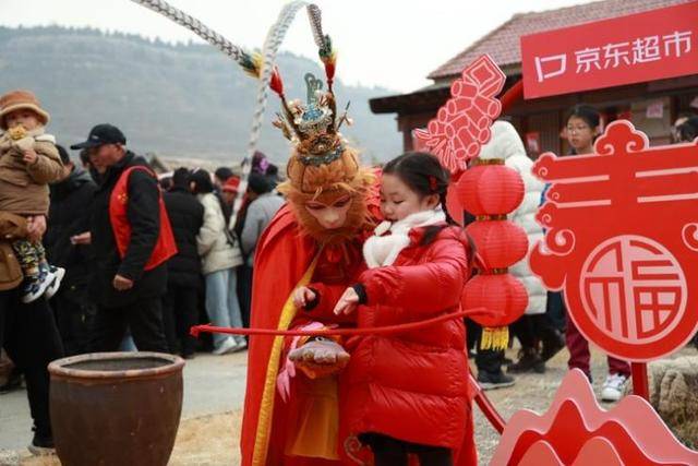 从精神抖擞的舞狮队伍送新春祝福,到全村老少围坐一起品尝热气腾腾、香气四溢的羊汤宴,从“大圣归来”的经典演绎和川剧变脸的绝活表演,到绚烂的烟花在夜空绽放,全天活动环环相扣,精彩纷呈。值得一提的是,京东超市还在村里设置了年货市集,牛奶、干货、糖果点心等琳琅满目的年货,村民边走边挑;游戏互动区中,男女老少纷纷玩起了投壶、套圈,大家在欢笑与惊喜中,沉浸式体验了一个有排面、有温度的小年。