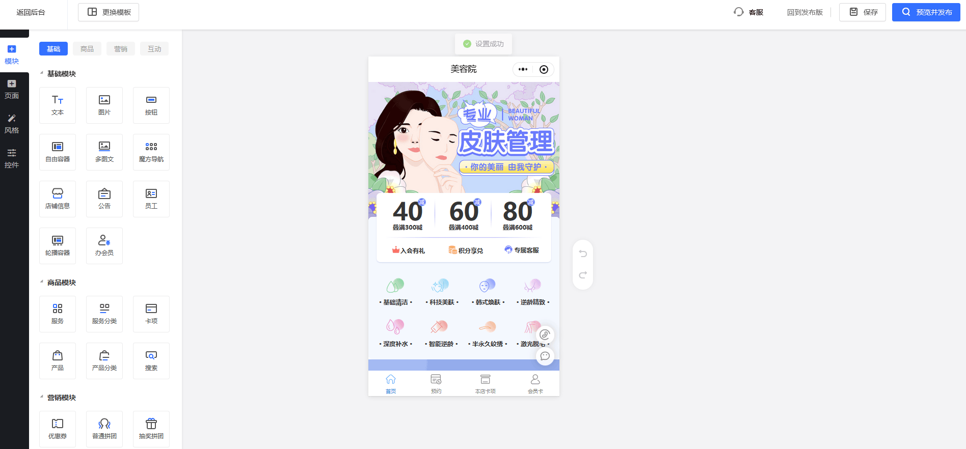 进入平台「页面设计」模块,采用可视化拖拽式操作搭建核心页面,全程“所见即所得”,无需专业设计能力。核心页面需涵盖登录注册页、会员个人中心页、会员资料页、积分/消费记录页及管理员后台页,可直接拖拽平台提供的按钮、表单、列表、图表等组件,调整页面布局、上传品牌LOGO和图片、修改文字内容及配色方案,贴合自身品牌风格。编辑过程中可随时点击“预览”,扫码查看手机端显示效果,若不满意可即时调整,全部优化完成后点击“保存”,避免编辑内容丢失。