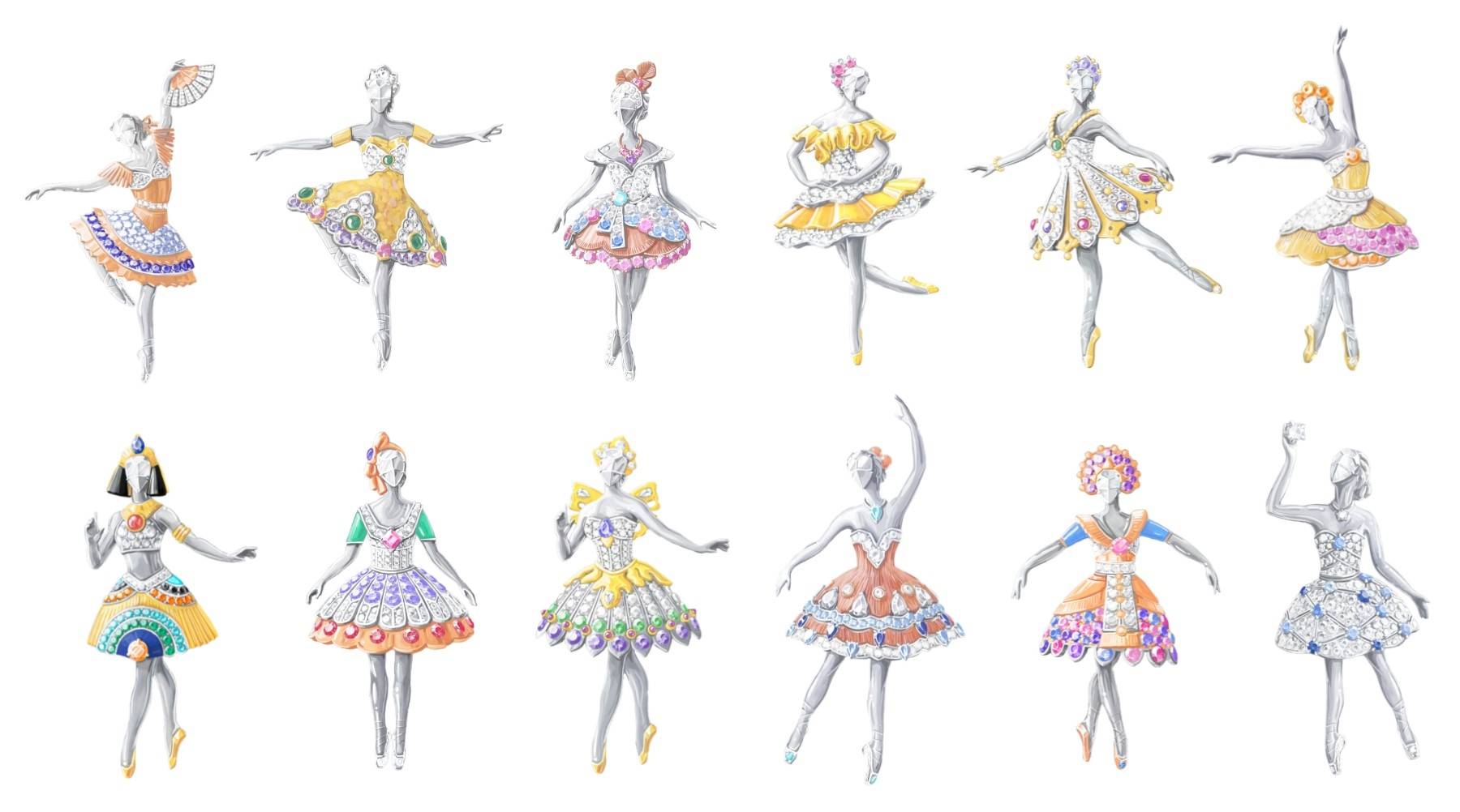 这一季的 12款高级珠宝胸针作品,是一次对19世纪浪漫主义芭蕾的深度致敬,也是对 “绿色蜡材” 雕刻工艺的极限挑战。在这些作品真正闪耀之前,工匠们必须在脆弱的绿蜡上进行无数次的微雕与试错,因为唯有这种极具可塑性的介质,才能精准还原芭蕾舞伶那轻盈的肢体语言与舞裙布料的垂坠感。这种对“毫厘”的偏执,使得每一枚胸针都拥有了不可复制的生命温度。
