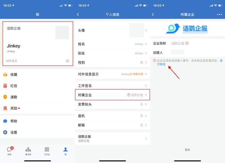 操作方法手机端:「企业微信app」-「我」-「对外名片」-「所属企业」-「进行验证蓝字」