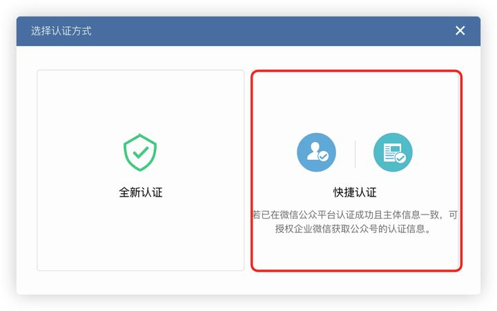 这里推荐通过微信公众号管理员授权的方式对企业微信进行企业认证。