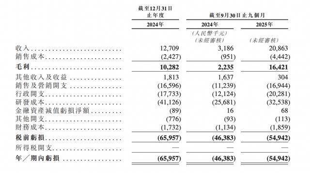 2025年前9月,公司收入2086.3万元,同比增长554.83%;期内亏损5494.2万元,上年同期亏损4638.3万元。