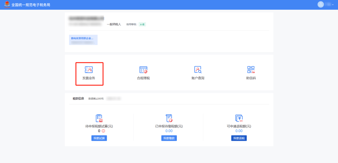 功能菜单依次选择【税务数字账户】-【发票业务】-【发票额度调整申请】。