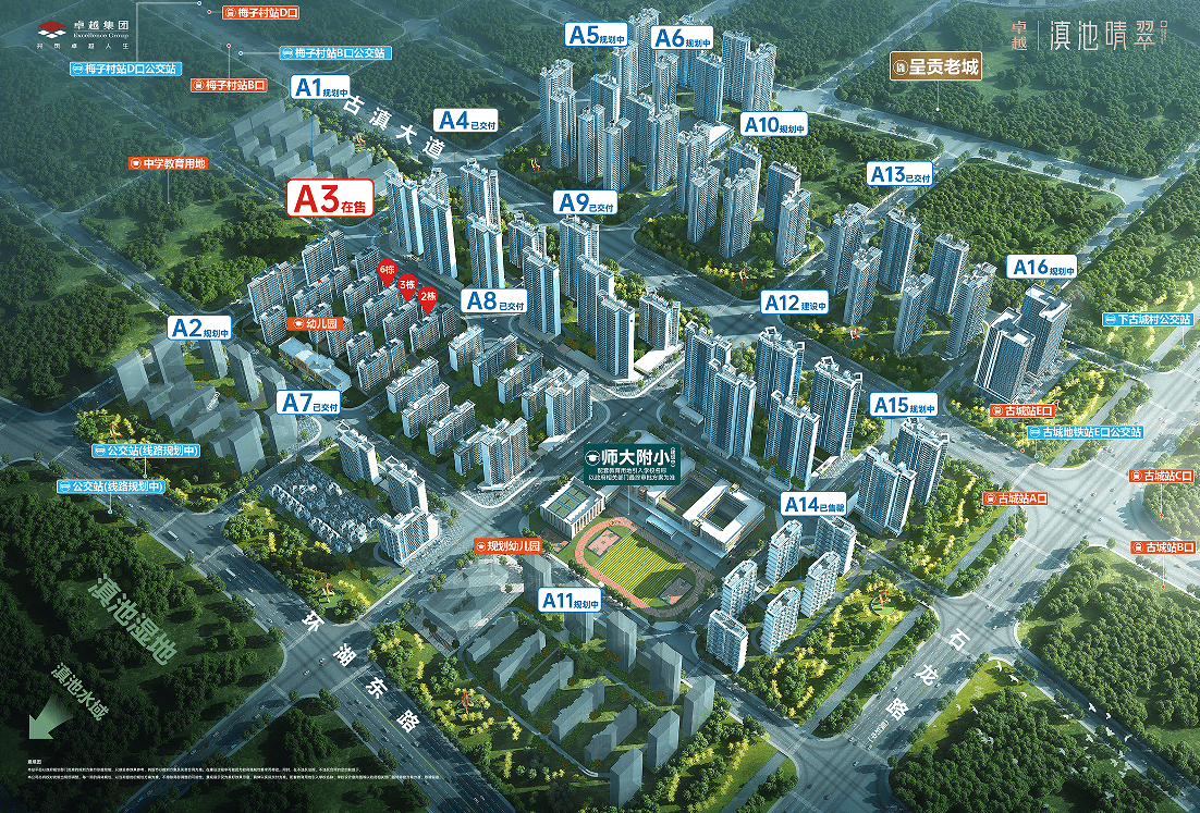 ②2025年3月呈贡区教体局发布公告,计划投资3.3亿元,在斗南片区建设30班中学(紧挨A3洋房地块);