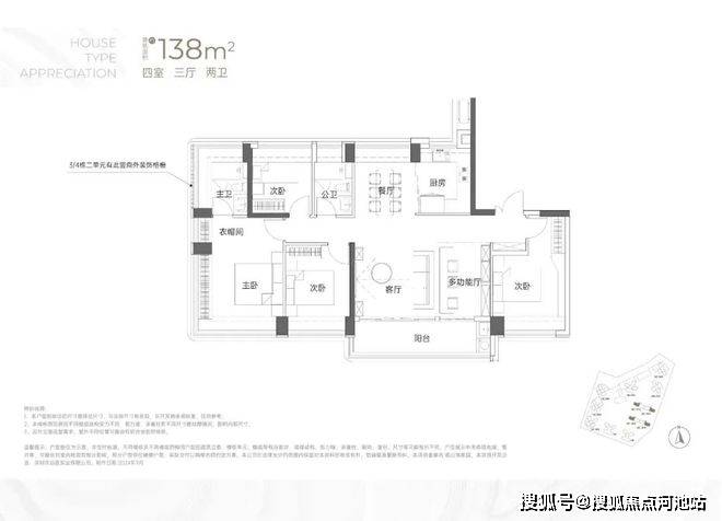这次我们开盘推出的户型138㎡为小区楼王3/4栋,17层2梯2户板楼,带独立电梯厅,可以做5房,赠送后得房率去到94-97%。