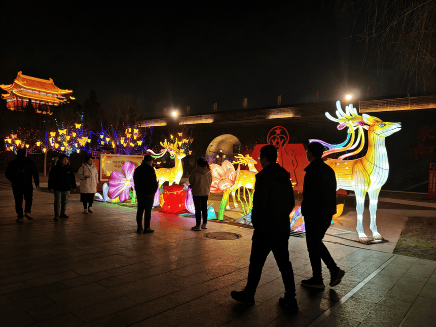 夜幕降临,万千非遗花灯次第点亮,东阿阿胶城瞬间化身光影的海洋。流光溢彩的花灯与古城的古建筑群交相辉映,勾勒出一幅绝美的新春画卷。游客们漫步在灯火阑珊的街巷,赏非遗花灯、品胶香年味、拍新春美照,沉浸式感受着东阿独有的新春浪漫。