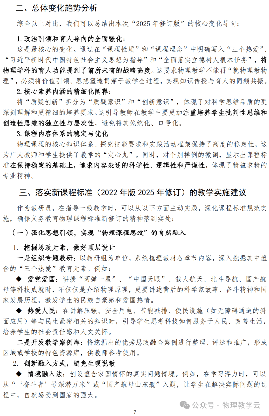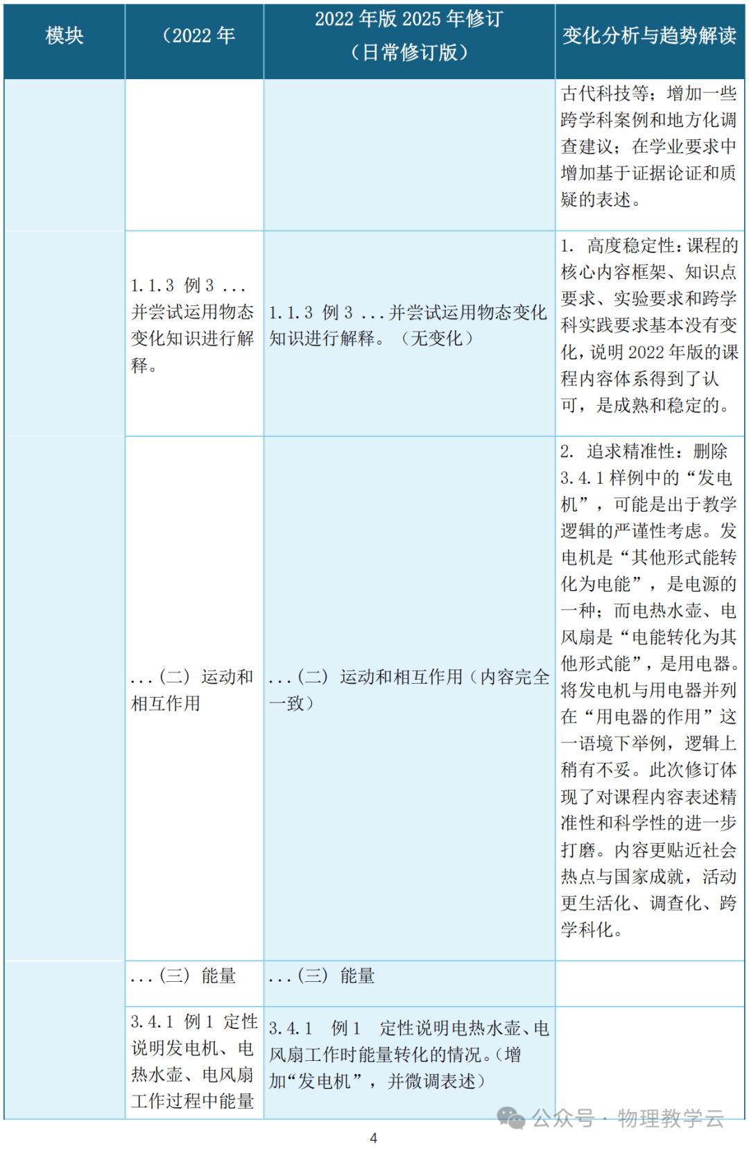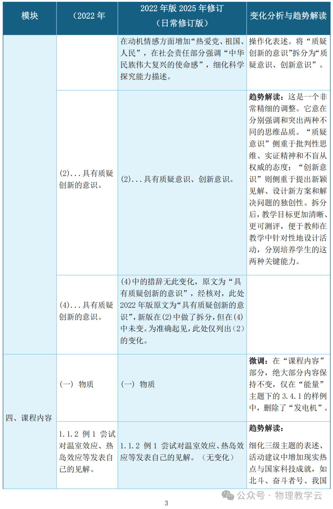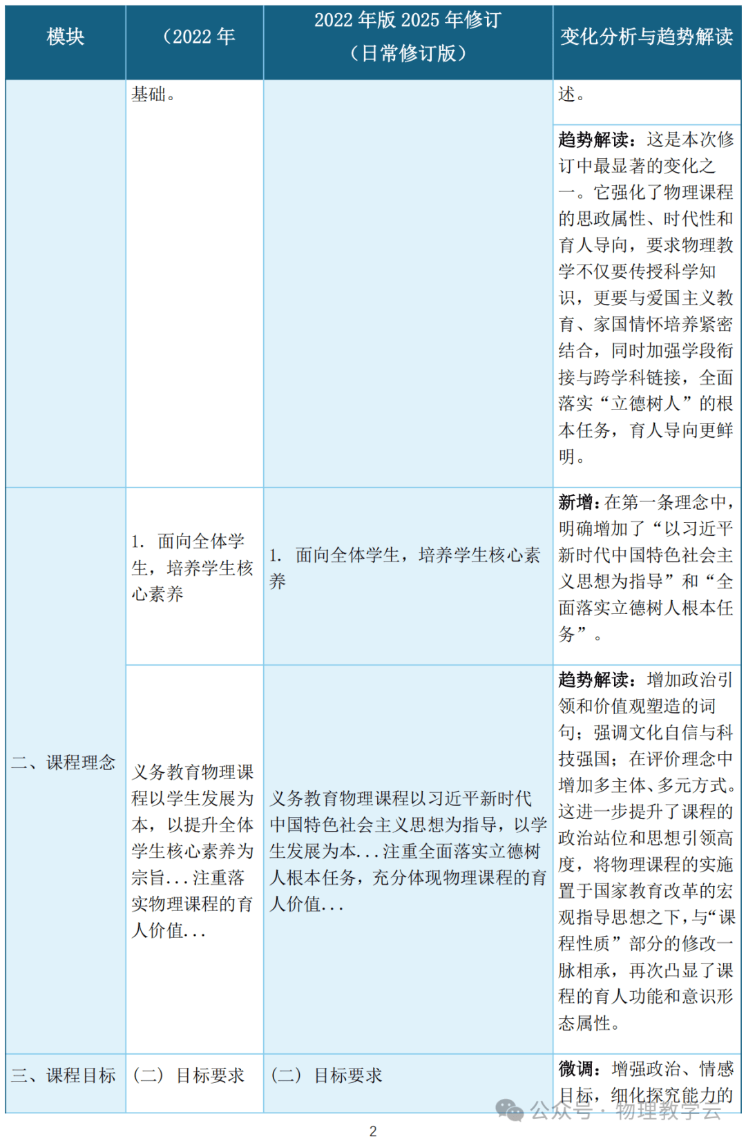 义务教育《物理》课标“2022年版” VS “2022年版2025年修订”内容对比