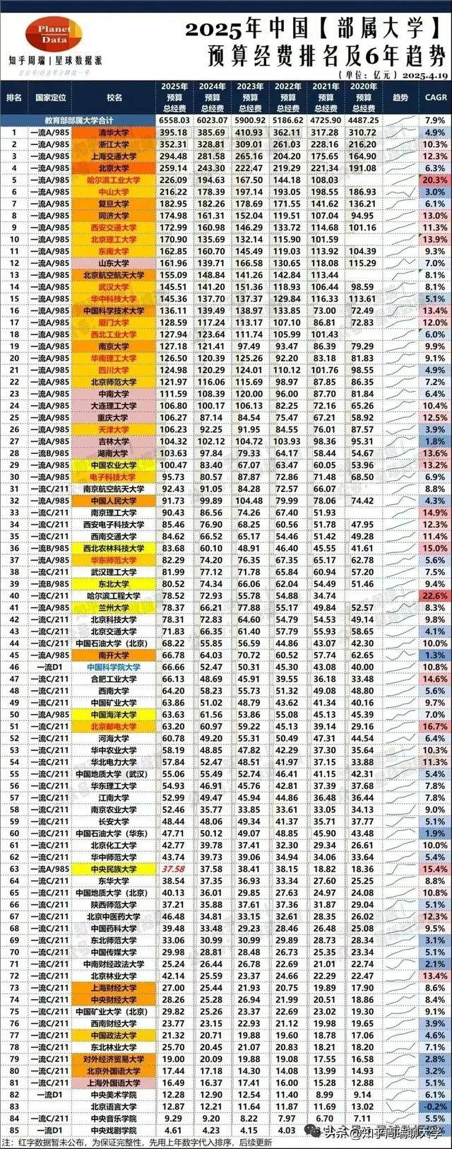 更值得期待的是,这两份部委预算的公布,只是一场大戏的序幕。未来几周,教育部和工信部所属的数十所顶尖高校将陆续公布各自的年度预算,真正的“高校经费排名”即将浮出水面。在当下中国高等教育的语境里,那个排名所引发的关注、争议与焦虑,往往比任何学科评估都更为直接。