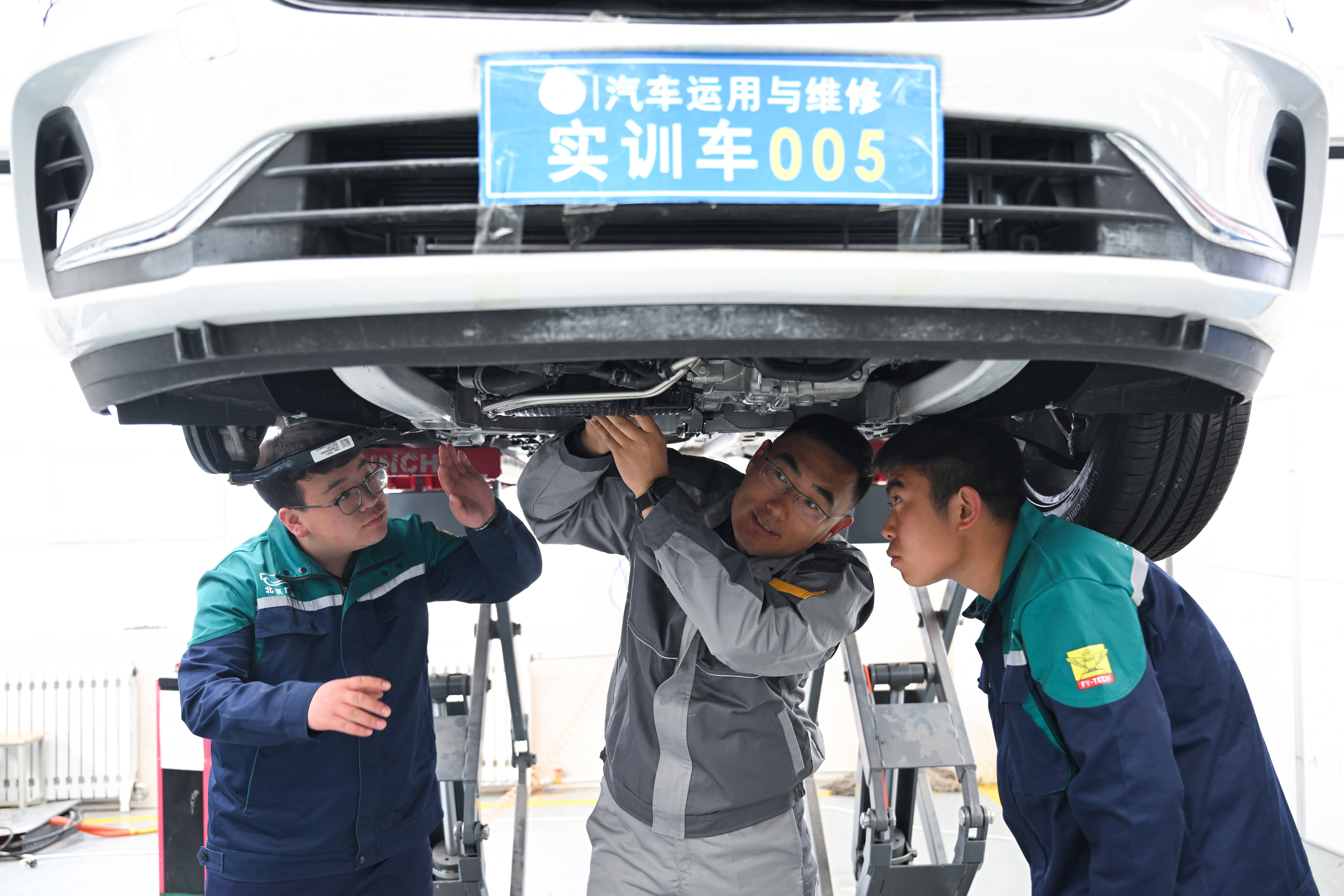 3月30日,在青海省海北藏族自治州职业技术学校,山东援青教师曹强(中)在指导学生实操。 新华社记者 张龙 摄