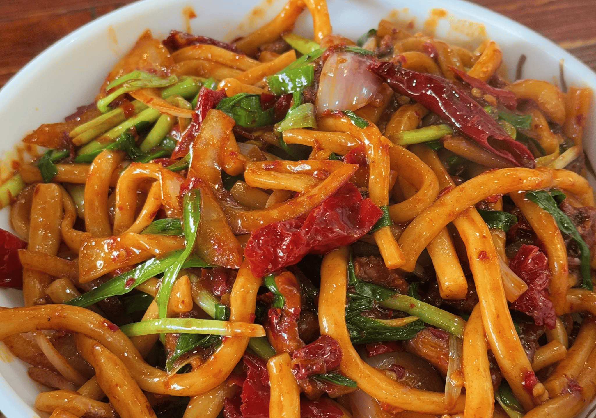 吐鲁番的拌面,凭着筋道的面条和丰富的配料,成为当地人餐桌上的常客,更是夏天解暑开胃的绝佳选择。面条选用优质面粉制作,经过反复揉搓、醒发,擀成薄片后切成均匀的长条,煮熟后捞出过一遍凉开水,这样面条会变得更加筋道爽滑,不易粘连。