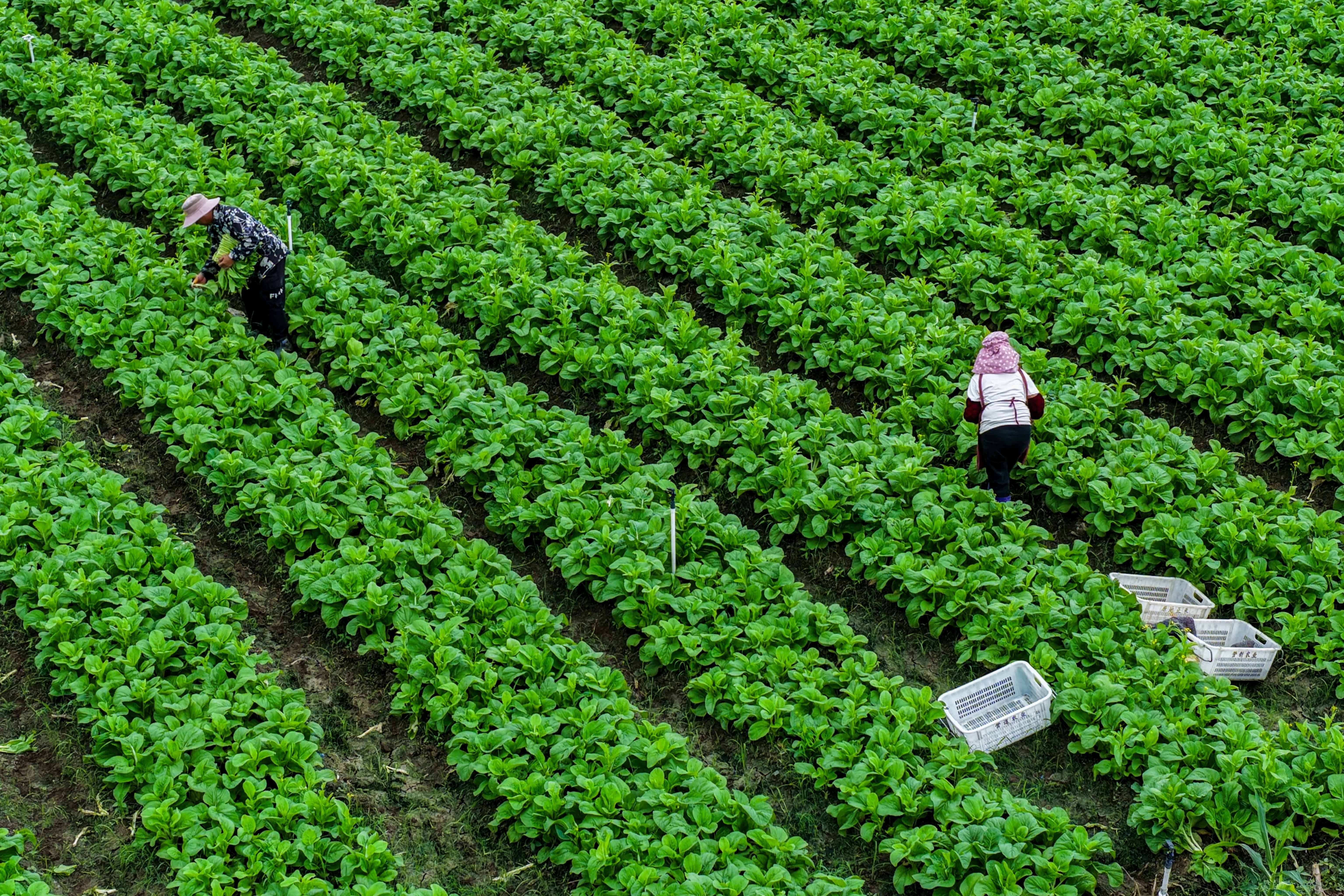 时下,该基地种植的头茬秋冬播蔬菜迎来收获期,农民抢抓农时加紧采摘,供应粤港澳大湾区市场。