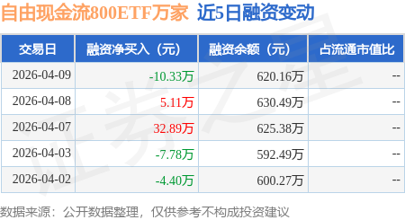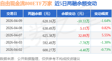 证券之星消息,4月9日,自由现金流800ETF万家(563580)融资买入5.78万元,融资偿还16.11万元,融资净卖出10.33万元,融资余额620.16万元,近20个交易日中有12个交易日出现融资净买入。