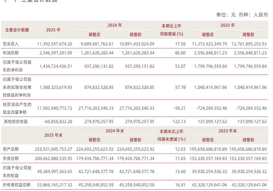 近日,中泰证券发布的2025年业绩报告显示,全年该公司实现营业收入113.93亿元,同比增长 17.58%,归属于母公司股东的净利润14.35亿元,同比增长53.07%,同期经营活动产生的现金流量净额为115.8亿元,期末总资产2,535.31亿元,归属于母公司股东的权益493.85亿元。