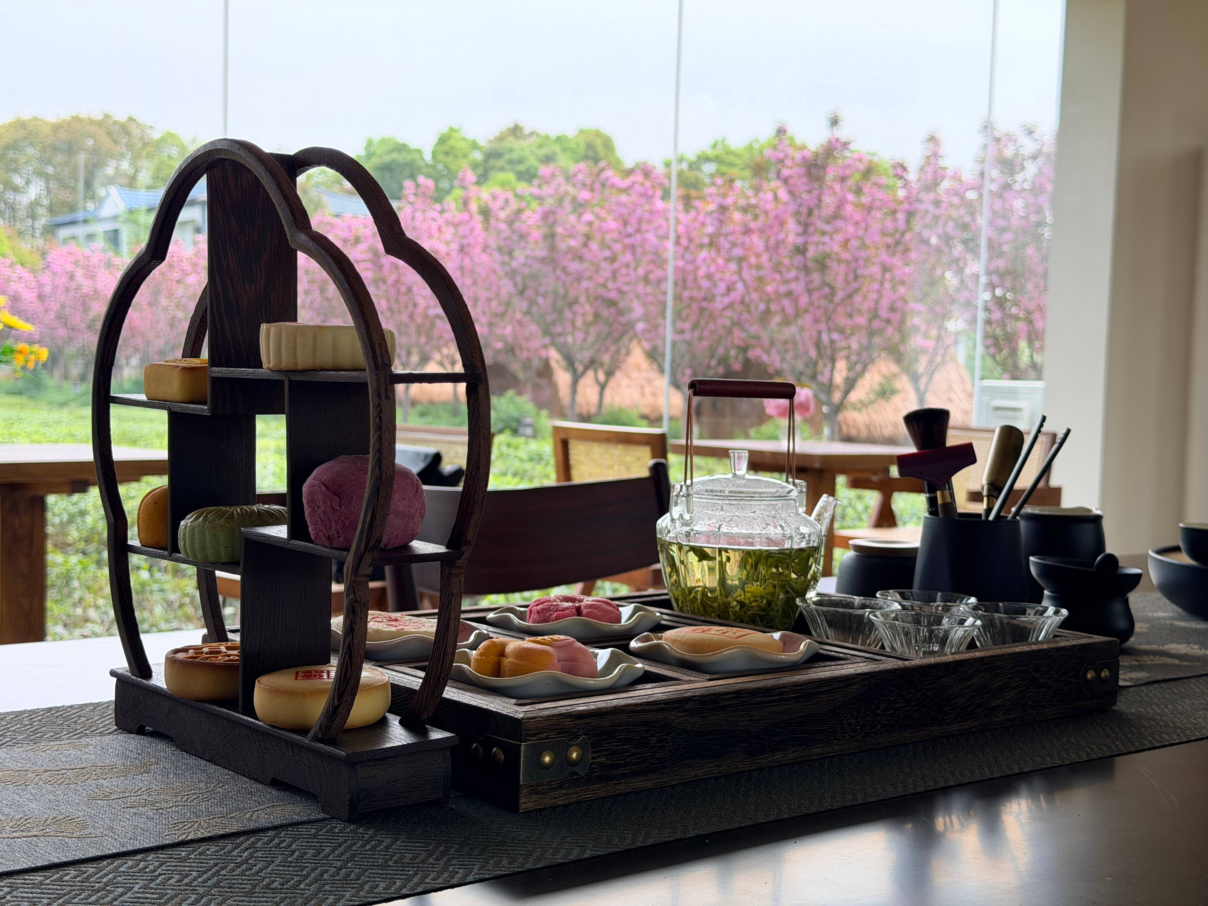 从奢侈品陈列师到茶园主理人,胡静将对极致美学的“细节控”带到了这片乡土。“可能是以前的工作把眼光养高了,”她笑着说,“林荫道、樱花道、木板路,必须整整齐齐。”园中每一处木作,都坚持由本地木匠手工打造。