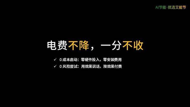 艾能节的合作模式同样引人注目:电费不降,一分不收。零硬件投入、零安装费用,0成本启动、0风险尝试,完全用效果说话,按效果付费。这不仅是一种商业承诺,更是对“确定性”的极致追求——让客户零风险锁定节能收益,将不确定的成本支出转化为确定的利润贡献。