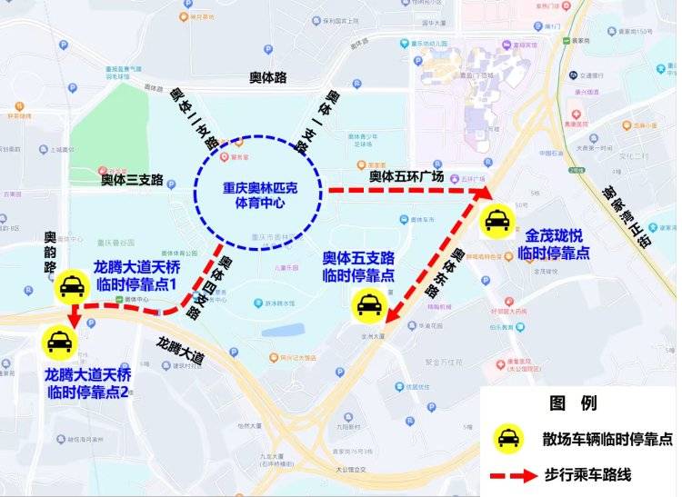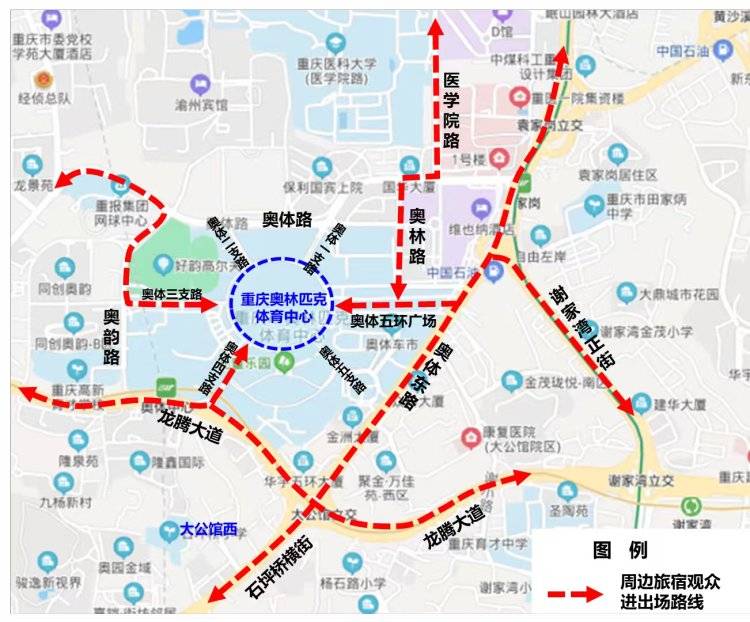 三、公安交通管理部门将在4月12日17:00-19:35,21:05-22:05(进散场高峰时段)对奥林一支路、奥林二支路(现处于施工阶段)实施临时交通管制,禁止所有车辆通行;在中新城上城停放的车辆可从奥林路出口驶出,经由奥体路往袁家岗方向行驶。