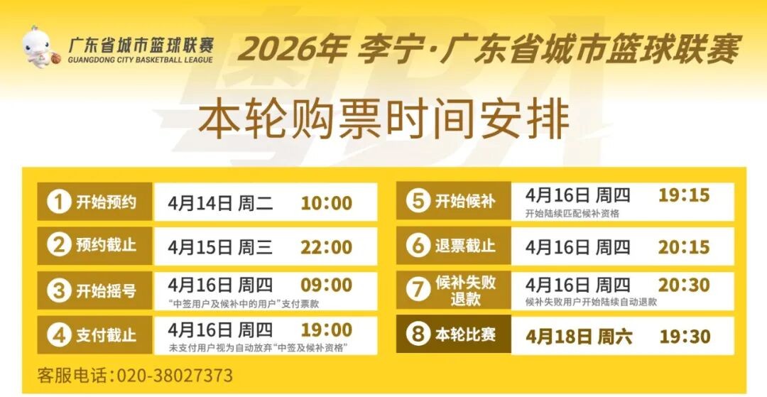 第四轮常规赛观赛门票预约通道将于4月14日上午10:00开启,4月15日22:00截止,请球迷朋友们留意相关购票时间节点。