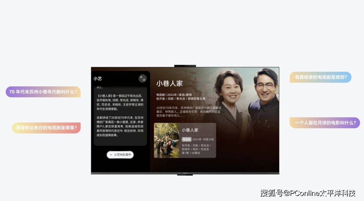 华为Vision智慧屏 6 SE搭载了MateTV系列同源的小艺语音助手,搜片能力行业领先,支持模糊搜片、剧情搜片、角色搜片、台词搜片,记不住片名、演员,说出剧情或台词就能快速找到想看的内容。同时具备百科问答与AIGC能力,解答孩子的十万个为什么、辅助学习,成为家长的好帮手、孩子的好玩伴。